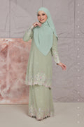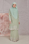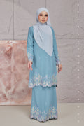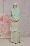 A sweet romantic embroidered chiffon lace kebaya riau kurung moden. Suitable for akad nikah, tunang, formal wear, events, wedding or any occasions. Shop your baju kurung now!